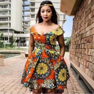 AFP9 – Wide Neck Pleated Short Ankara Dress