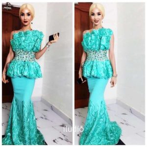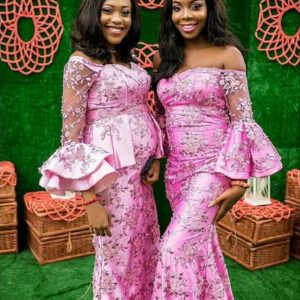 ASB176 – Pink Trumpet Sleeved Mermaid Dress