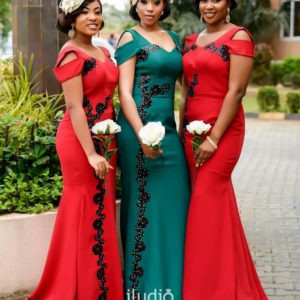 BMD59 – Patterned Red and Green Bridesmaid Dresses