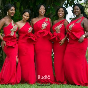 BMD61 – Unique One-Shoulder Red Bridesmaid Dresses