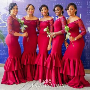 BMD27 – Floral Shoulder Bridesmaid Dresses