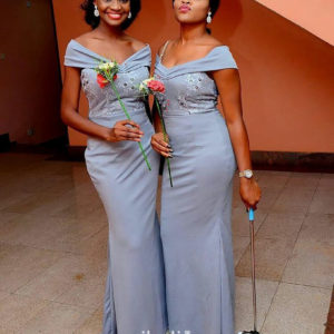 BMD5 – Off-the-shoulder / V-neck Bridesmaid Dress