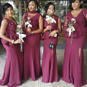 BMD7 – V-neck Bridesmaid Dresses with Slit