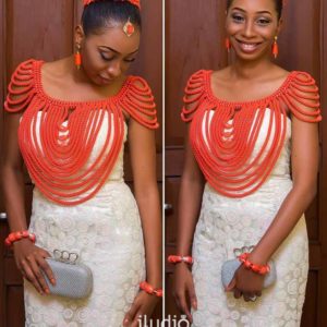 TRD16 – Edo Bridal Attire with Ruffles And Coral Beads