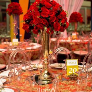 DCR21 – Red Roses and Gold Tower Centerpiece