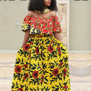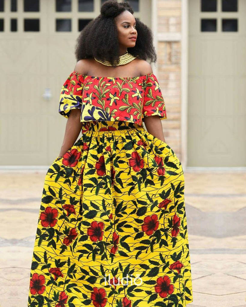 @lolaomonaija in a black sleeveless round neck top and an ankara skirt