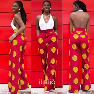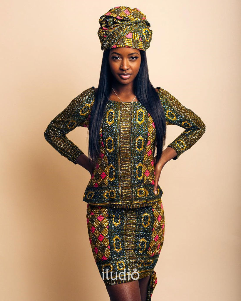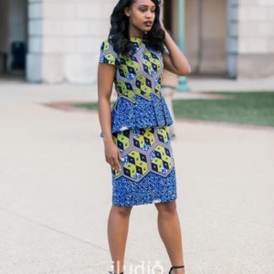 @thechameleonblogger in a short sleeve ankara top and a plain black skirt