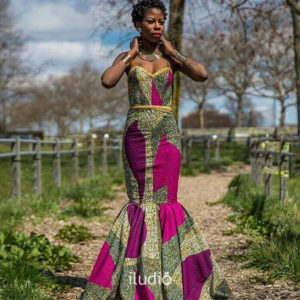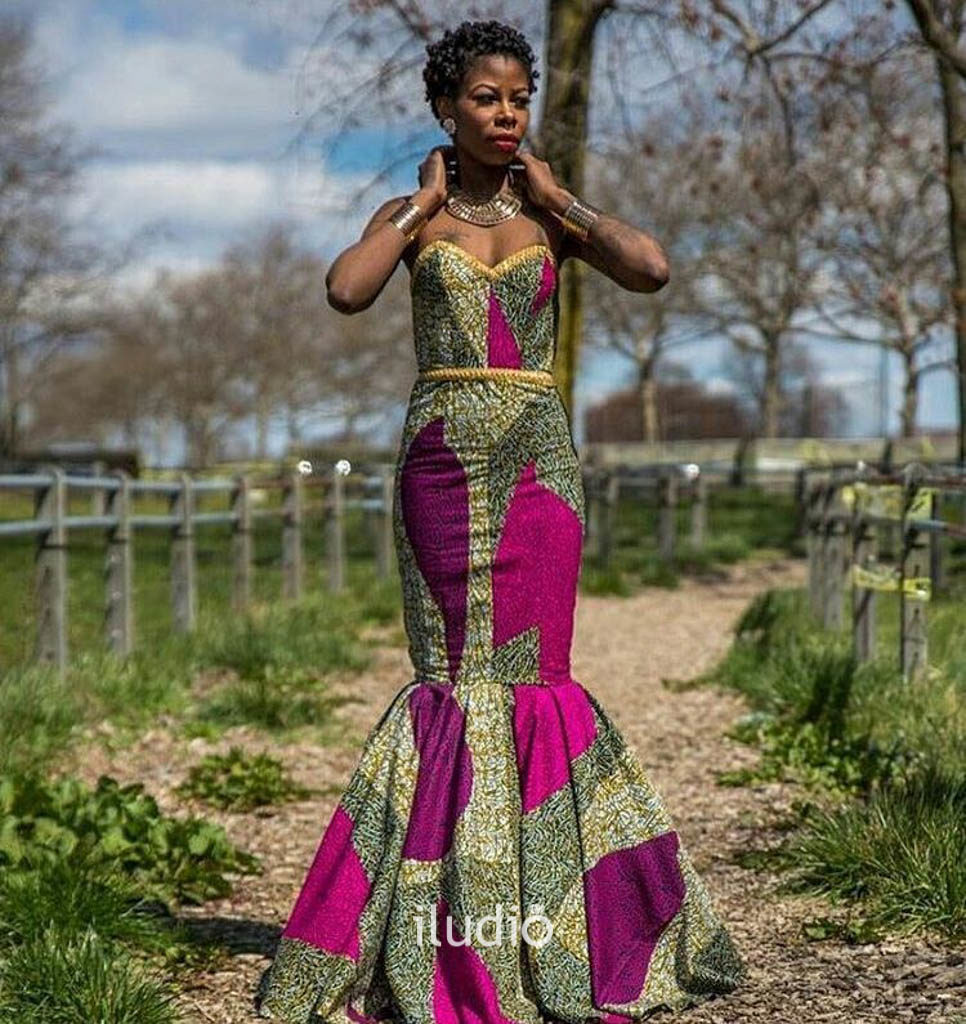 @sandra_aimurie wearing a Cold Shoulder African Print Mermaid Dress