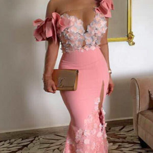 @bolzee411 wearing a strapless with ruffles dress and a choker
