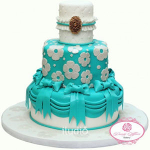 3 tiered wood inspired naked cake with pink and white floral decor