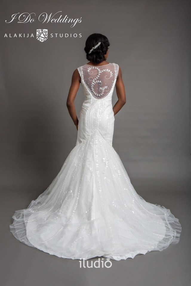 Front and Back views of Illusion Neckline Mermaid Wedding Dress – Style 5.